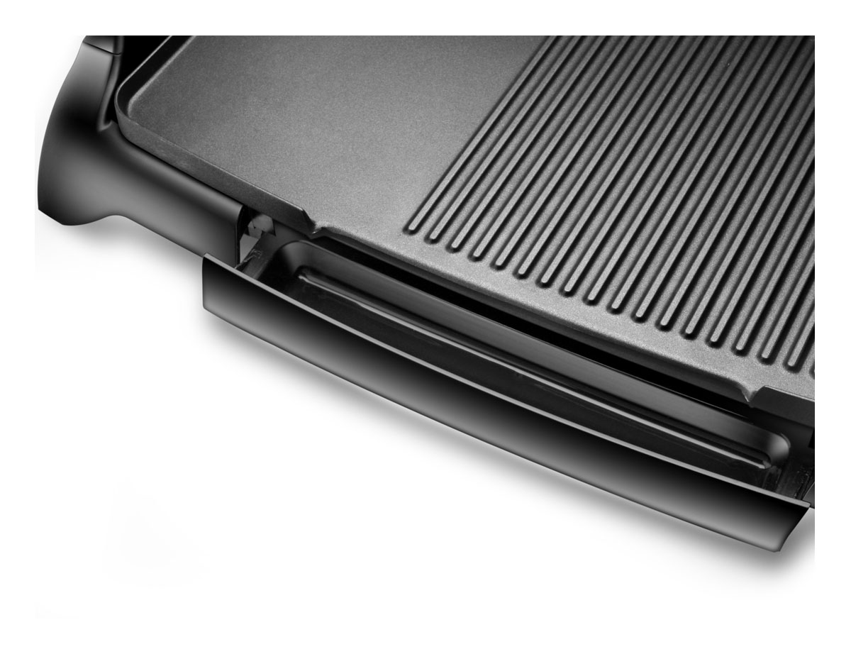 La superficie de la parrilla está recubierta con un material antiadherente y tiene canales que vuelcan la grasa en el recipiente colector de grasa que resulta muy útil para retirar y limpiar cada vez que termines de usar la parrilla. En pocos minutos y sin esfuerzo quedará en perfectas condiciones para su próximo uso.
