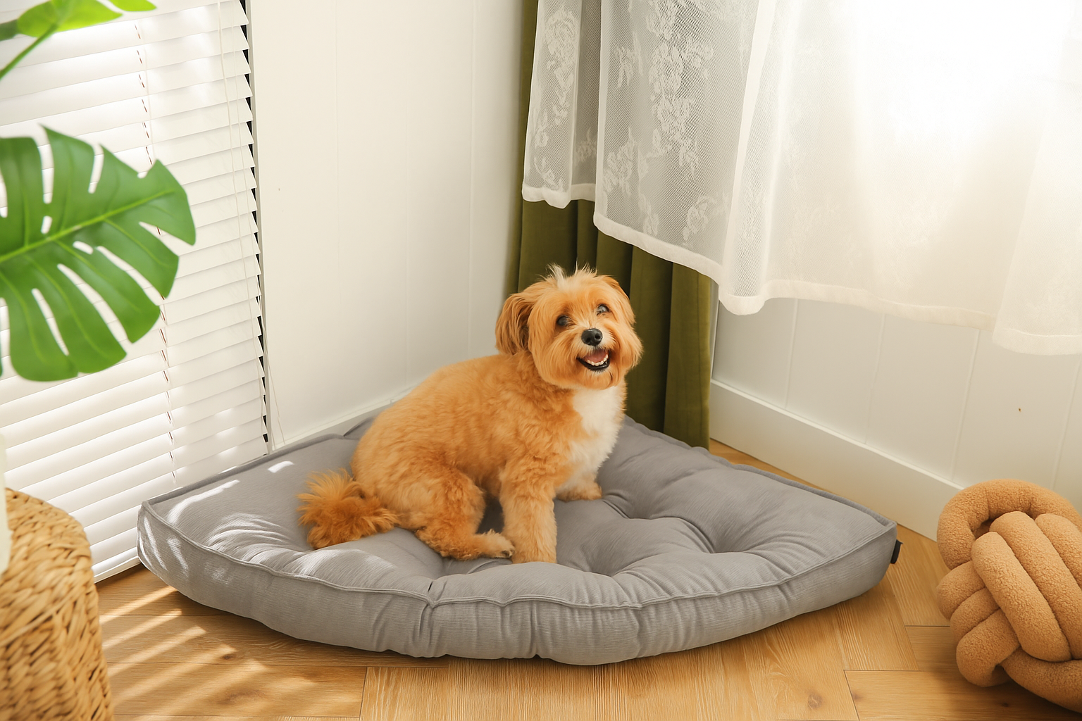 Con su diseño esquinero y acolchado uniforme, encaja a la perfección en cualquier rincón de tu hogar, asegurando el máximo confort. ¡Ideal para que peludos de todas las razas disfruten de una siesta súper cómoda!