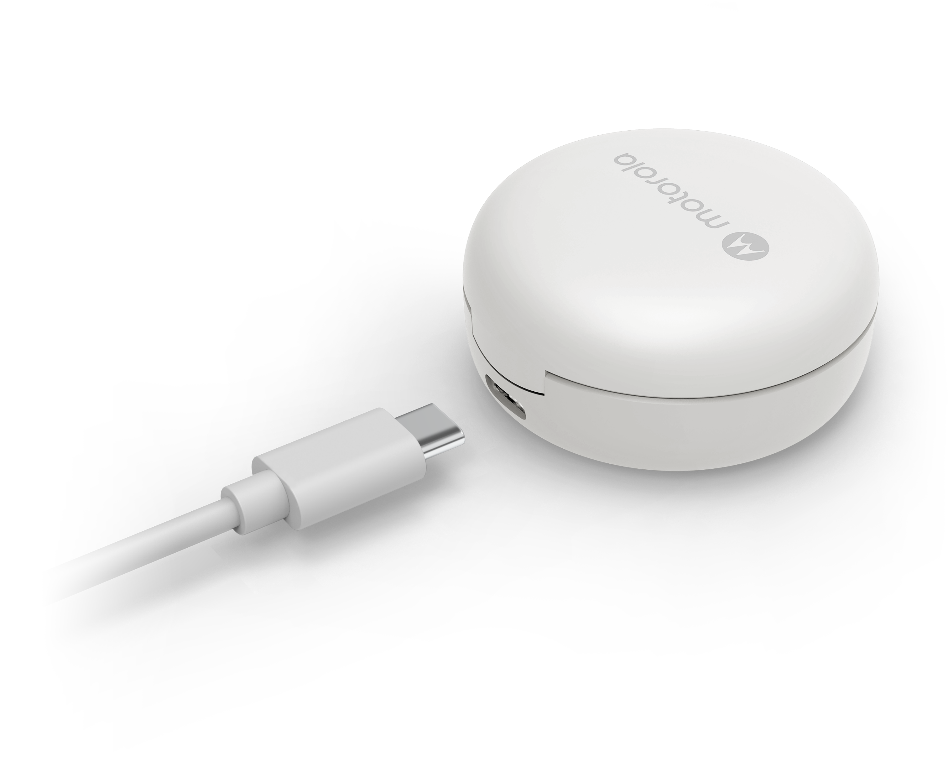 Los Auriculares In-ear Tws Bluetooth Blanco Buds 250 Motorola vienen con delicado estuche de carga inálambrica, práctico y de bolsillo. Para un confort y ajuste seguro