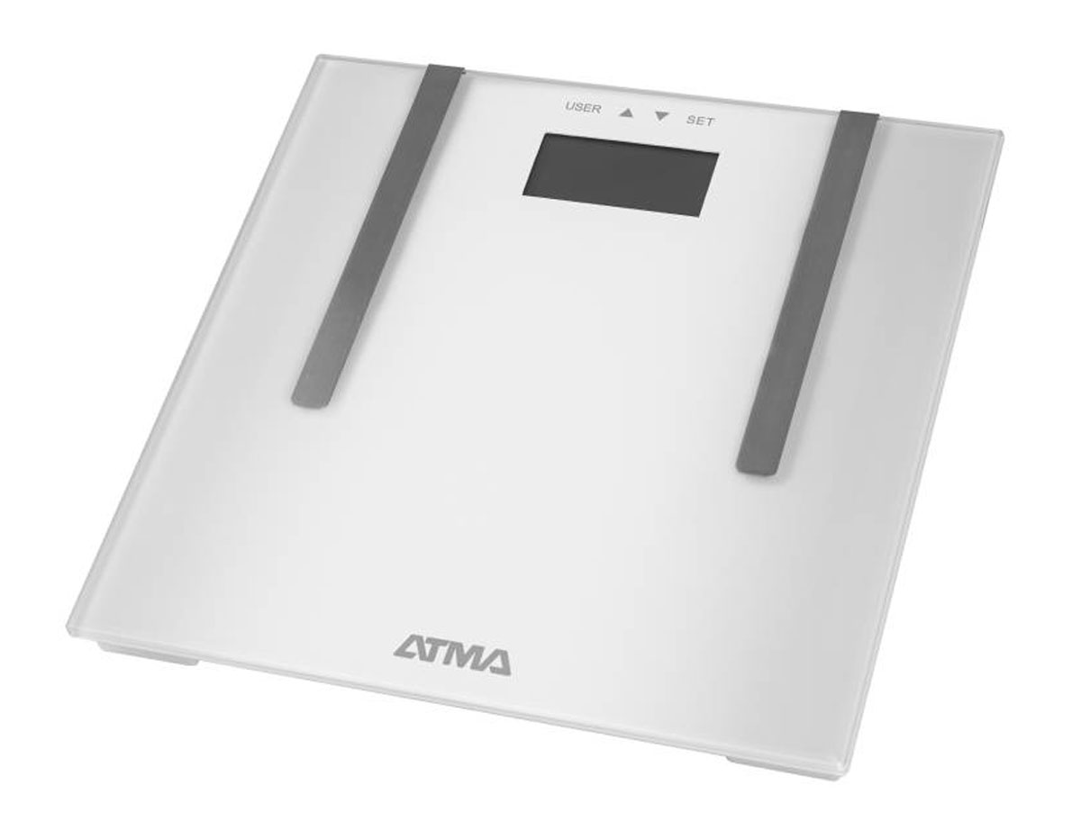 La Balanza Personal Digital Indicador de Grasa Corporal Blanca Atma te permite saber tu peso de manera más exacta, cuenta con un indicador de porcentaje de grasa corporal, agua y musculatura.