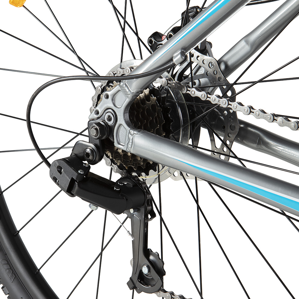 Cuenta con un cuadro de aluminio de talle M, que garantiza durabilidad y resistencia. Su rodado 29 y sus 21 velocidades te permitirán enfrentar cualquier terreno con facilidad. Además, cuenta con frenos de disco mecánico en la parte delantera, que proporcionan una mayor seguridad al frenar.