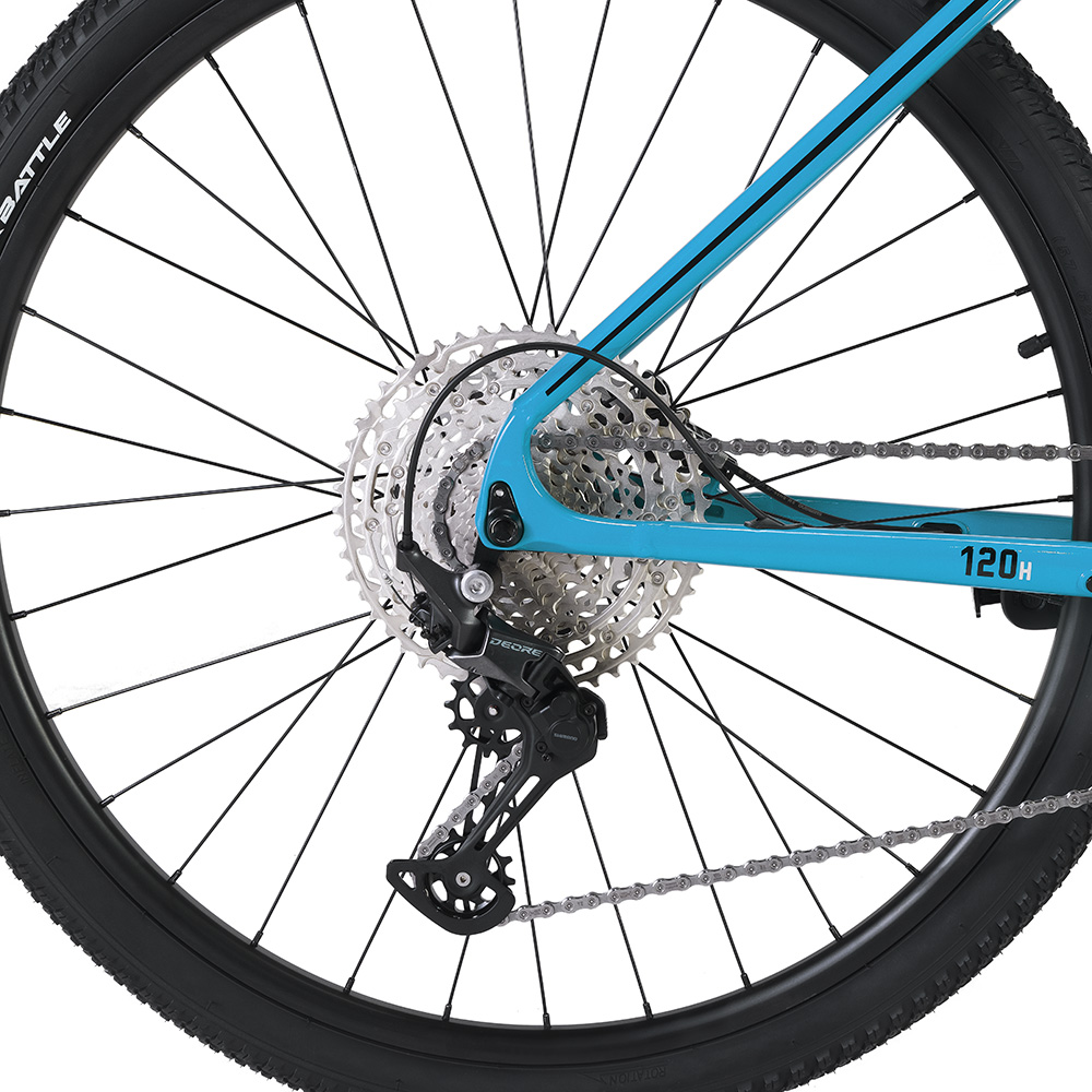Con un cuadro de aluminio robusto y liviano, te asegura maniobrabilidad y resistencia en cada pedaleo. Equipada con un sistema de 12 velocidades Full Shimano Deore 6100, podrás ajustar cada cambio con precisión y mantener el ritmo en cualquier terreno.