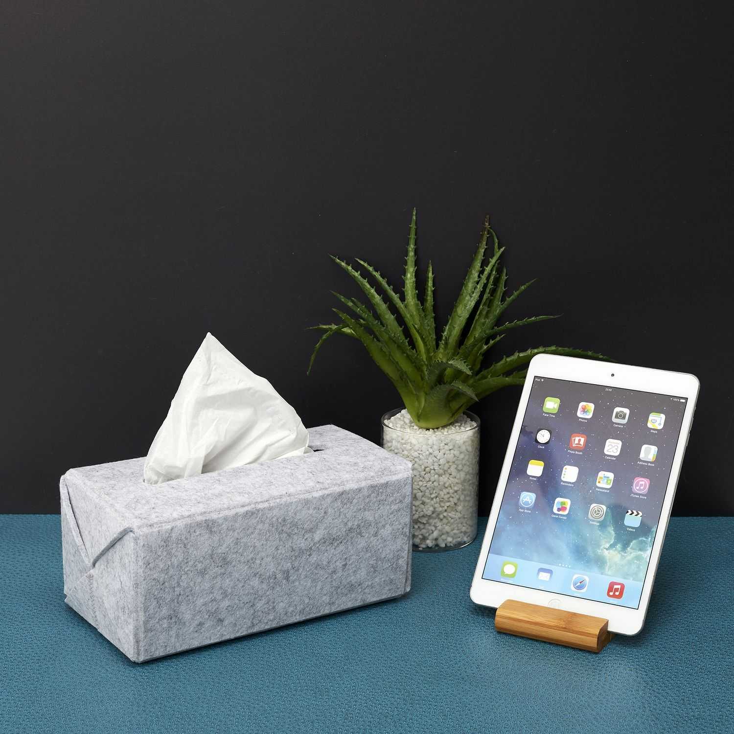 Este accesorio es ideal para quienes buscan combinar estilo y practicidad en su hogar. Confeccionada en poliéster, su suave textura de fieltro gris ofrece un toque sofisticado a cualquier ambiente.