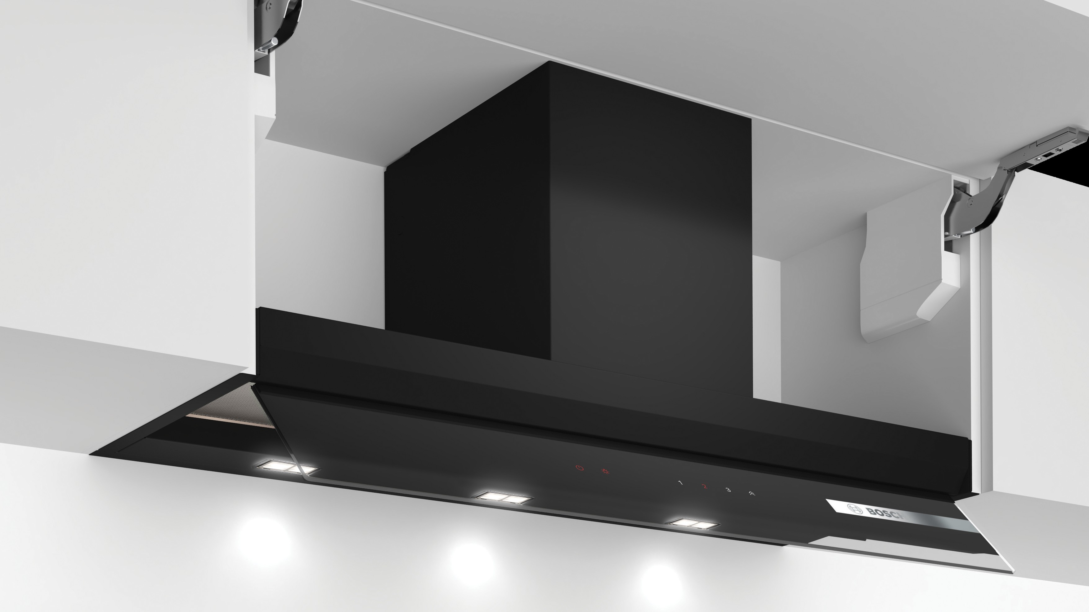 Dale un toque de sofisticación a tu cocina con la Campana Decorativa Integrada de BOSCH, de 90 cm, en un elegante cristal negro.