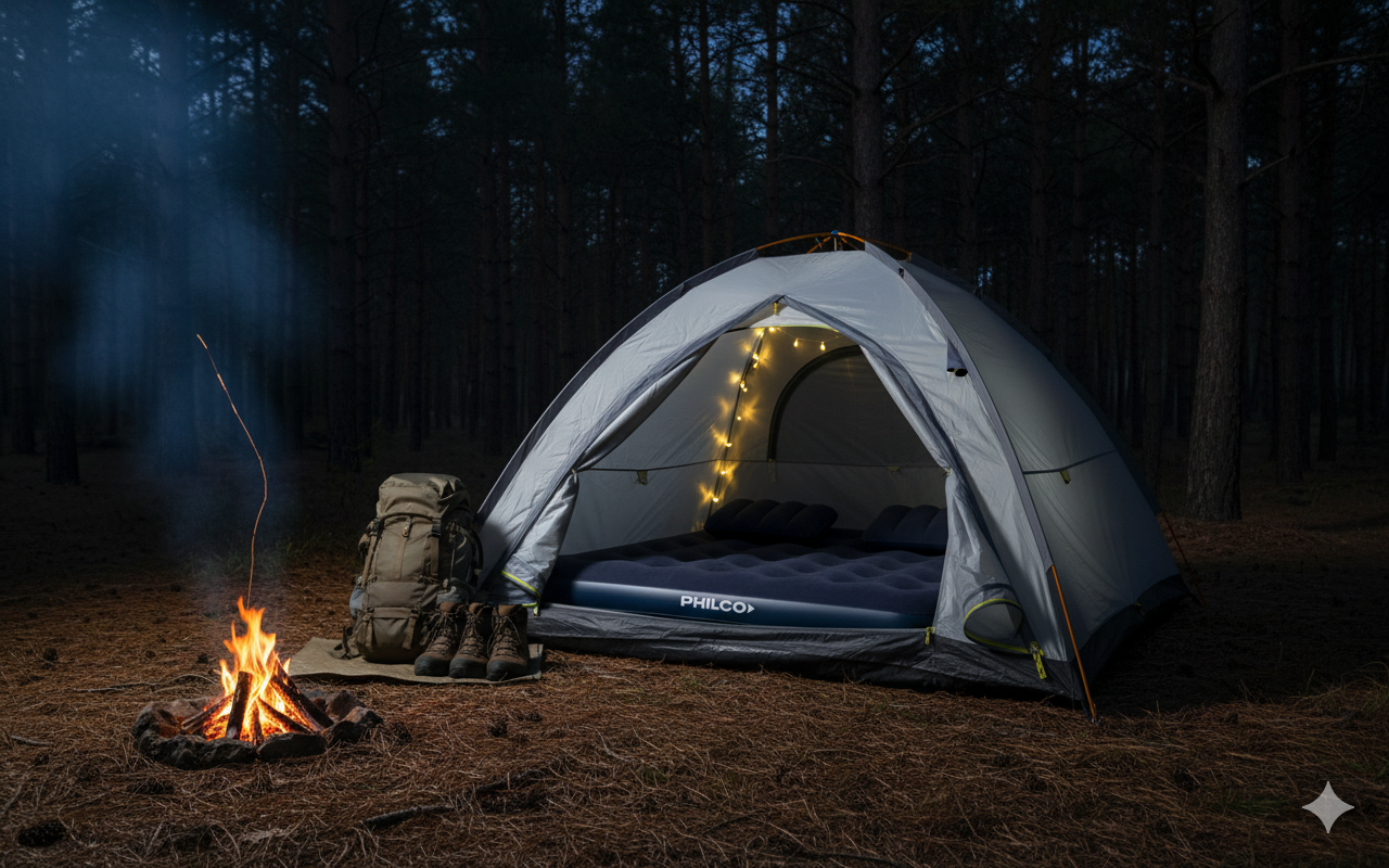 Experimentá el máximo confort en tus aventuras al aire libre con el colchón inflable Philco de 2 plazas!