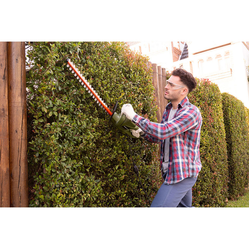 Gracias al mango frontal completamente envolvente, cada corte será cómodo y bajo su control. Cuenta con una hoja de 560 mm de alta calidad de hierro forjado resistente al óxido con un diámetro de corte de 16mm. Gracias a su potente motor de 500w alcanza las 3500 rpm y cuenta con un movimiento de doble acción.
