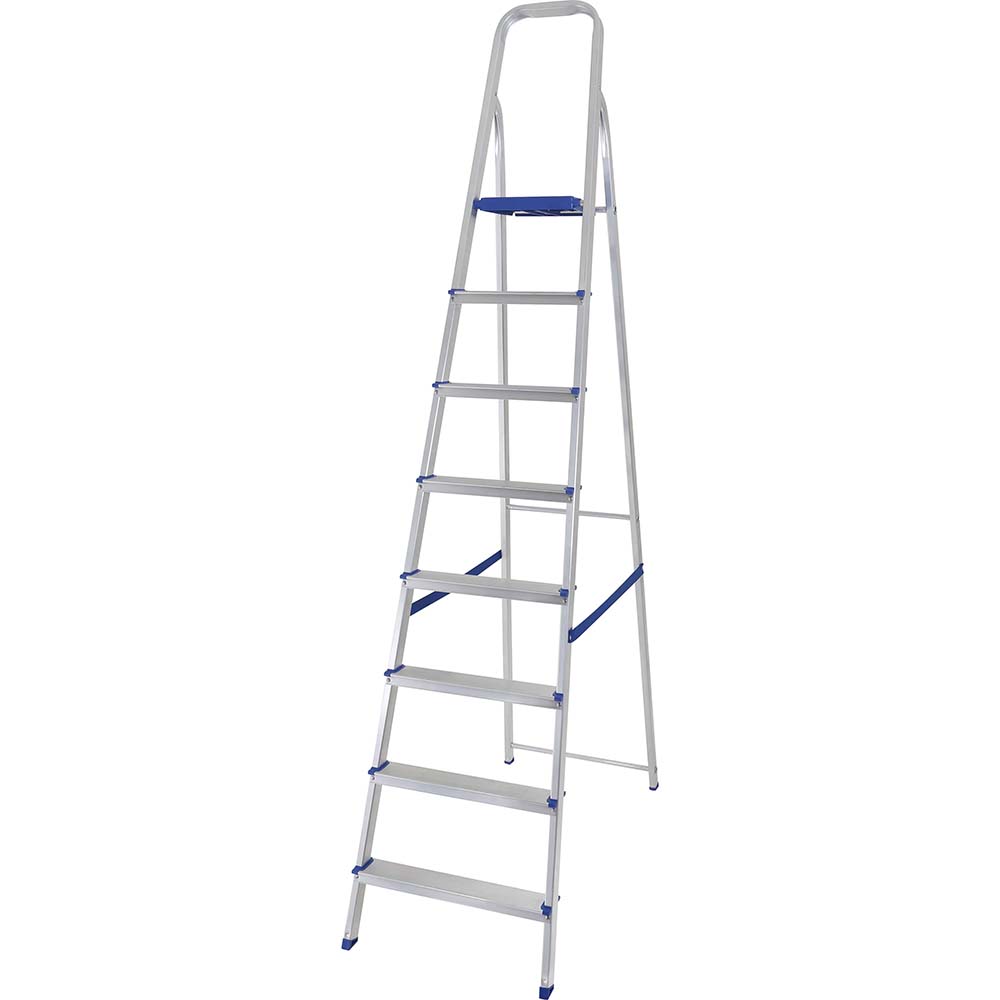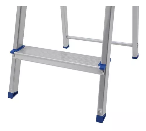 Cuenta con 8 escalones, proporcionando una mayor altura para alcanzar superficies muy elevadas. Soporta hasta 120 kg, garantizando una estructura sólida y segura para el usuario y herramientas.