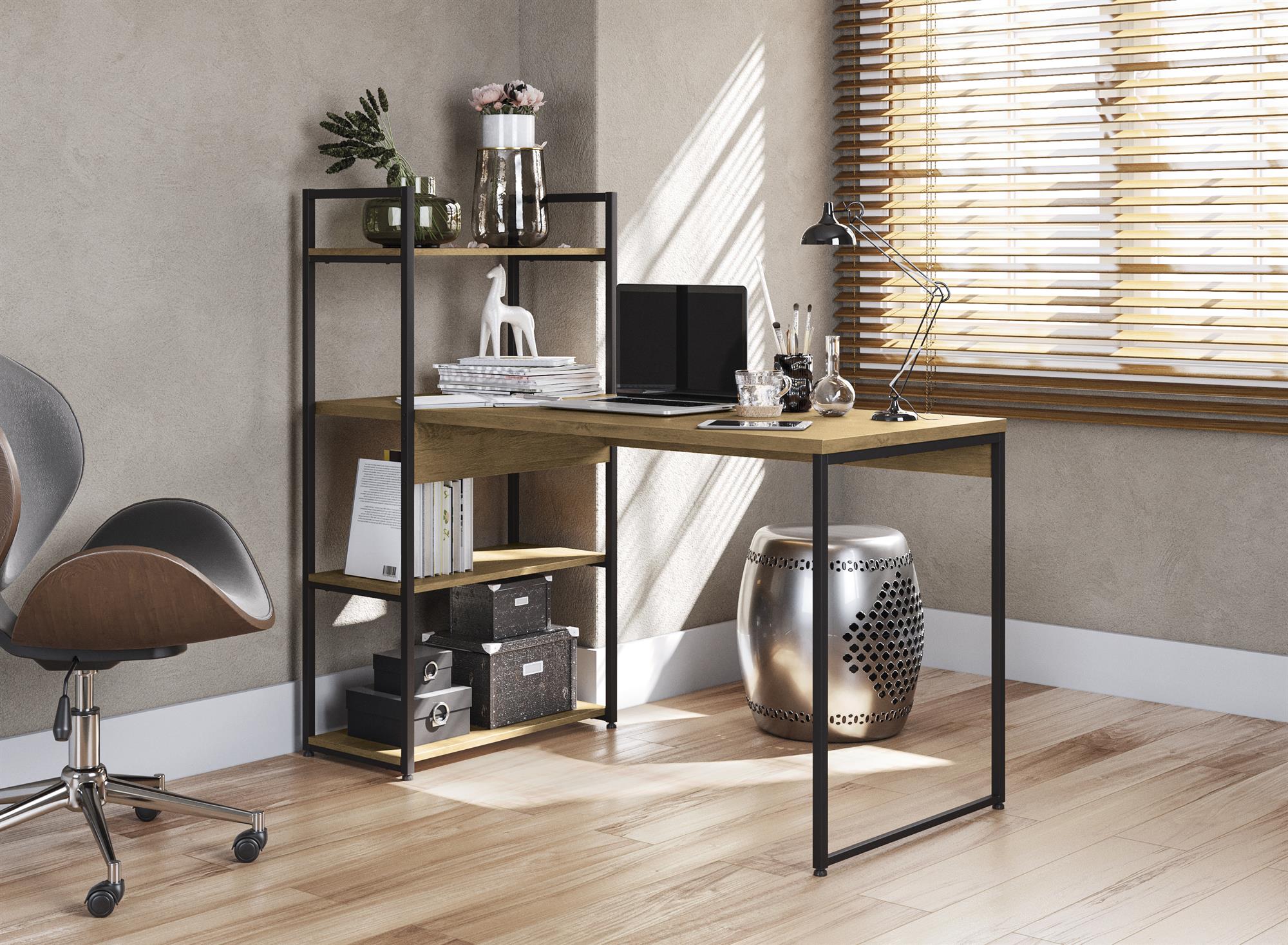 El escritorio con estantería tipo industrial de Atma combina funcionalidad y estilo en un diseño robusto y moderno.