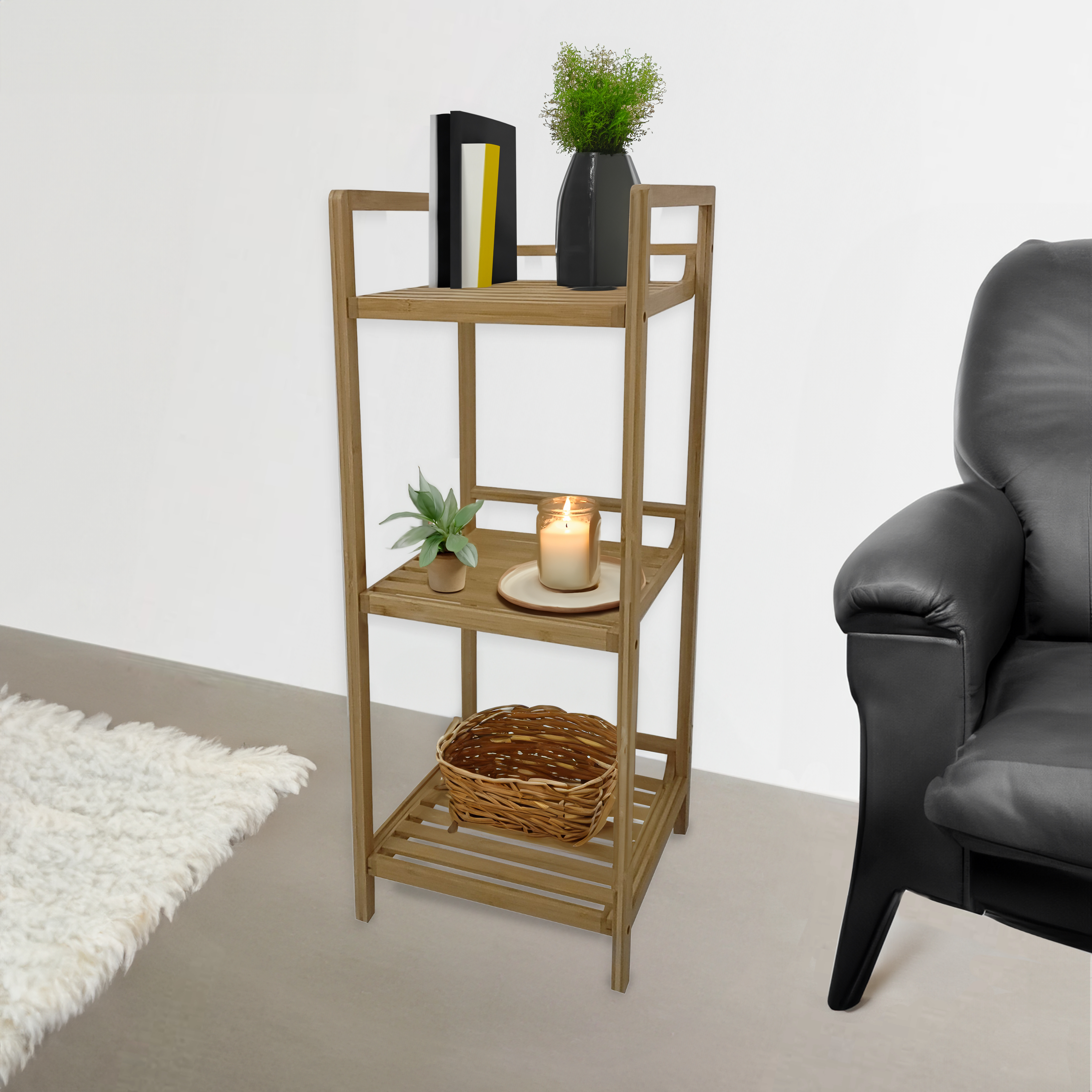 Es tu aliada perfecta para darle un toque natural y moderno a tu hogar. Con sus 3 niveles de almacenamiento, aprovecha al máximo el espacio para organizar tus libros, plantas o cualquier objeto deco que desees lucir. Fabricada en bambú, es liviana y resistente, soportando hasta 4 kg por estante.