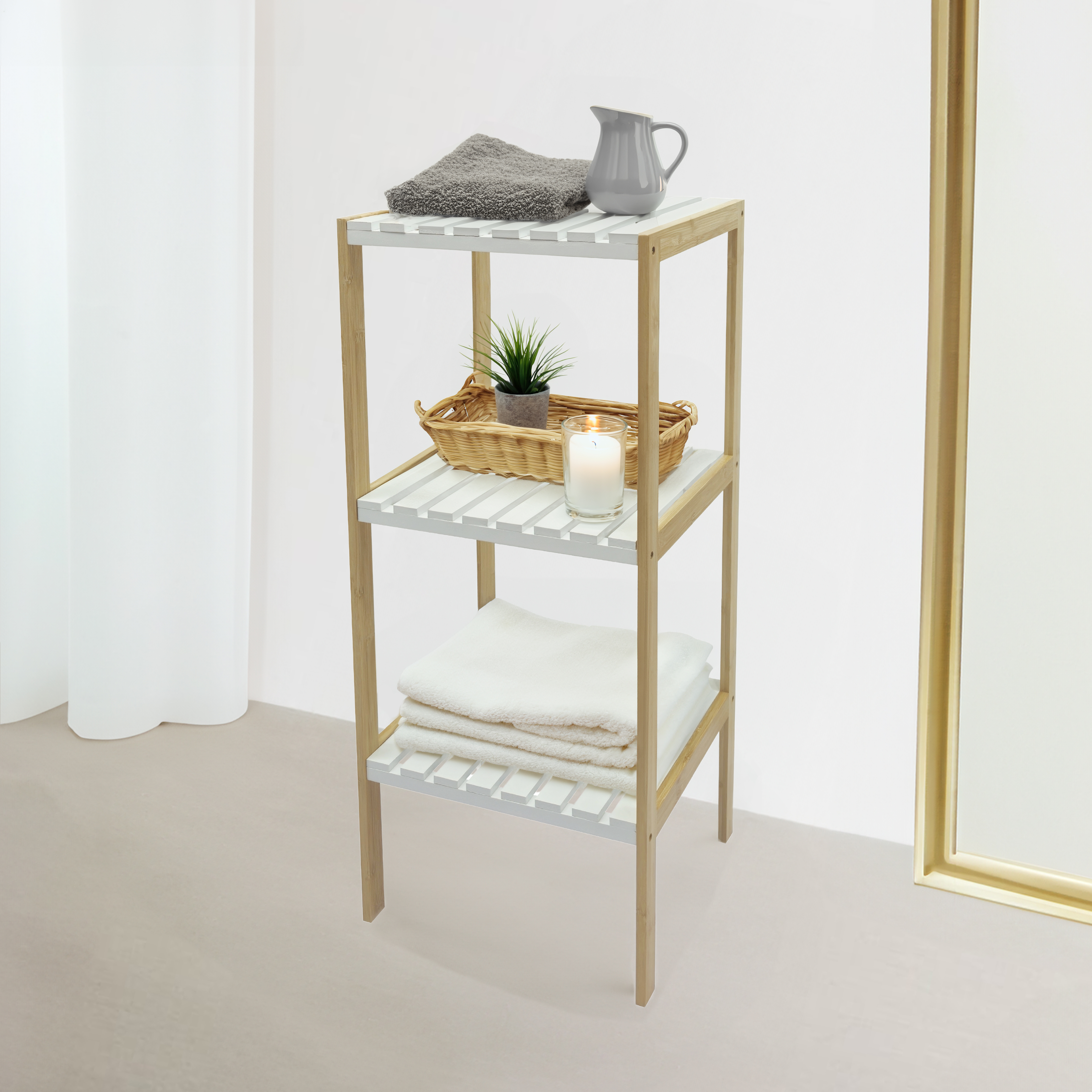 Estantería De Bambú Atma Home 3 Niveles Blanco Calado