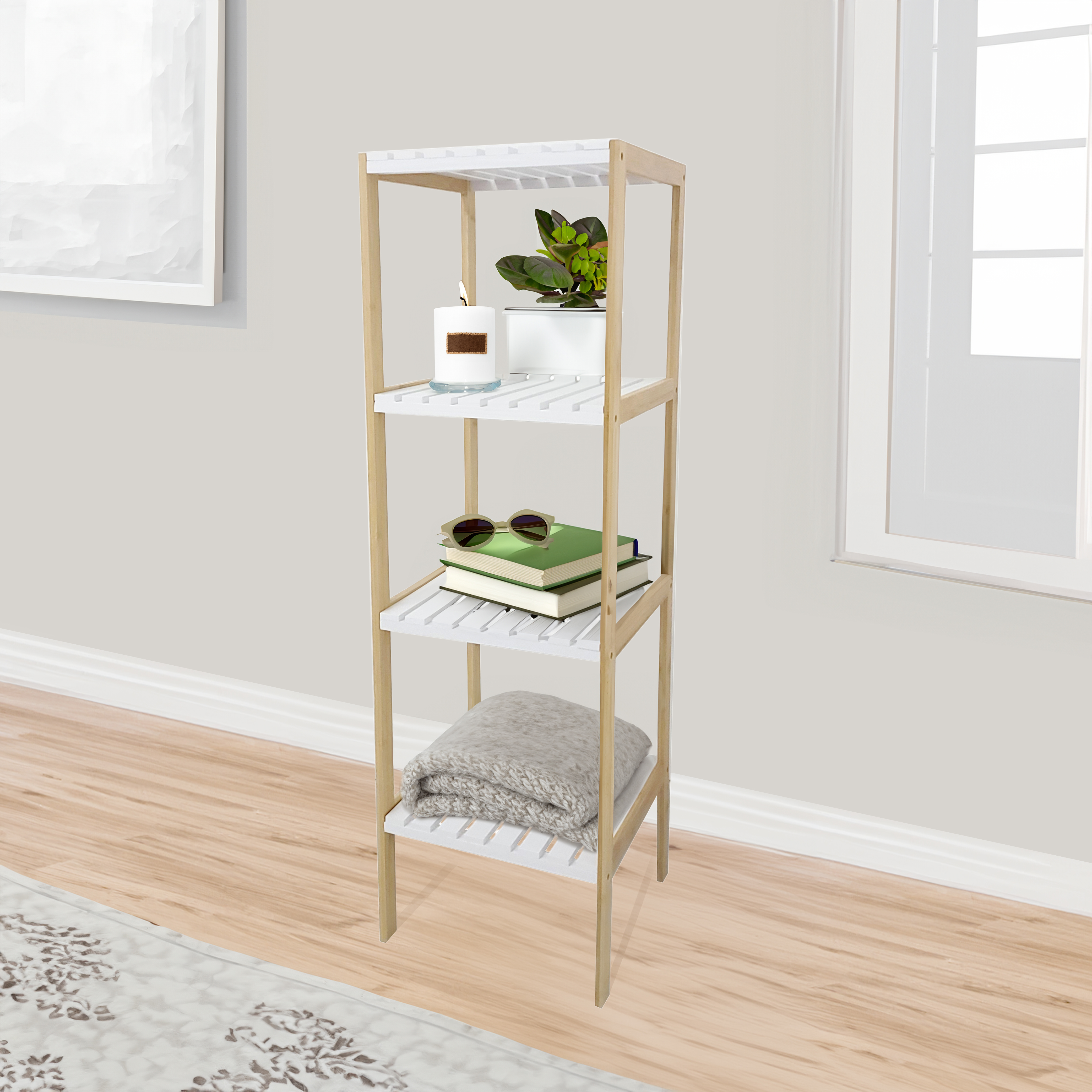 Estantería De Bambú Atma Home 4 Niveles Blanco Calado