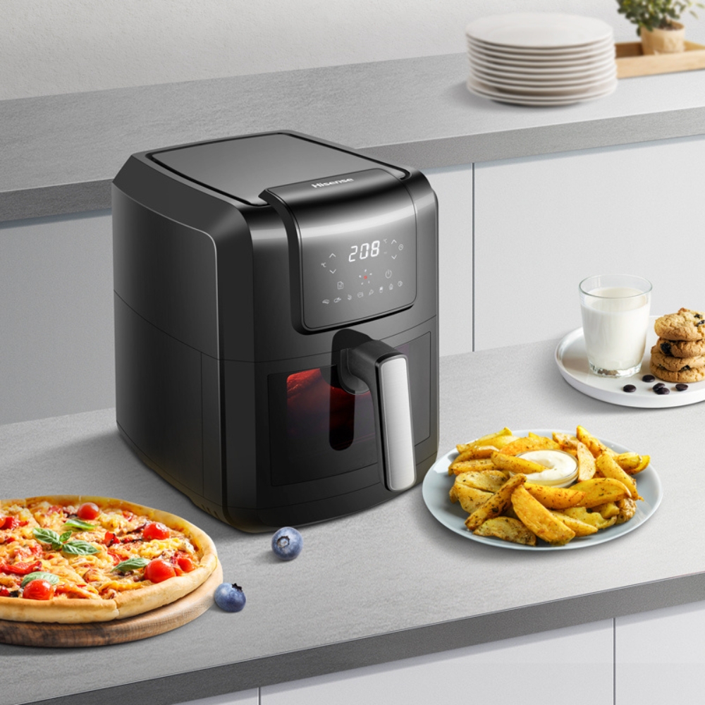 Dale un giro saludable y moderno a tu cocina con la freidora de aire Hisense de 6,3 litros.