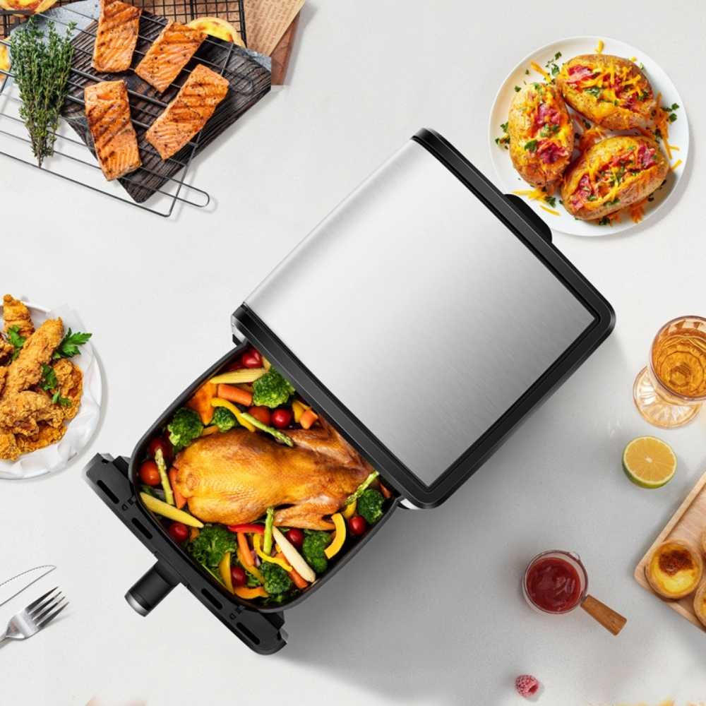 Transformá tus comidas favoritas en platos saludables y deliciosos con la freidora de aire Hisense de 8 litros.