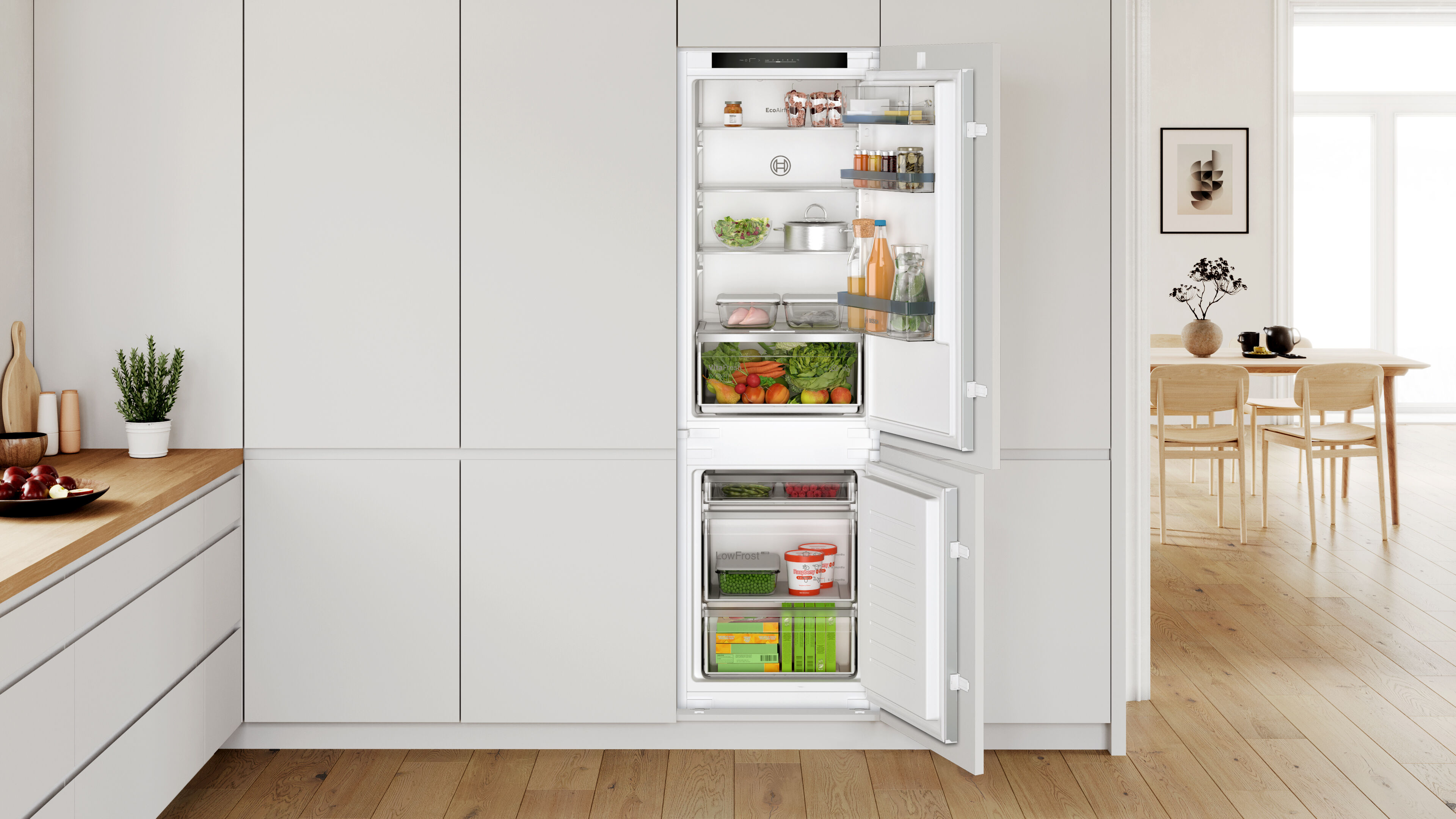 Descubrí la heladera integrable Bosch , diseñada especialmente para darle un toque de modernidad y eficiencia a tu cocina .