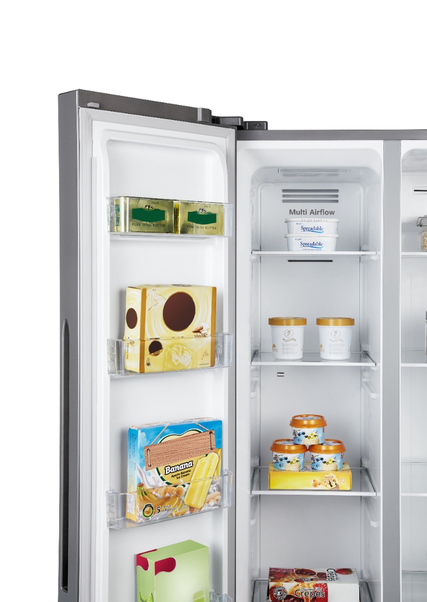 Descubrí la Heladera SBS 468L Hisense, diseñada para brindarte comodidad y frescura en cada rincón de tu cocina.