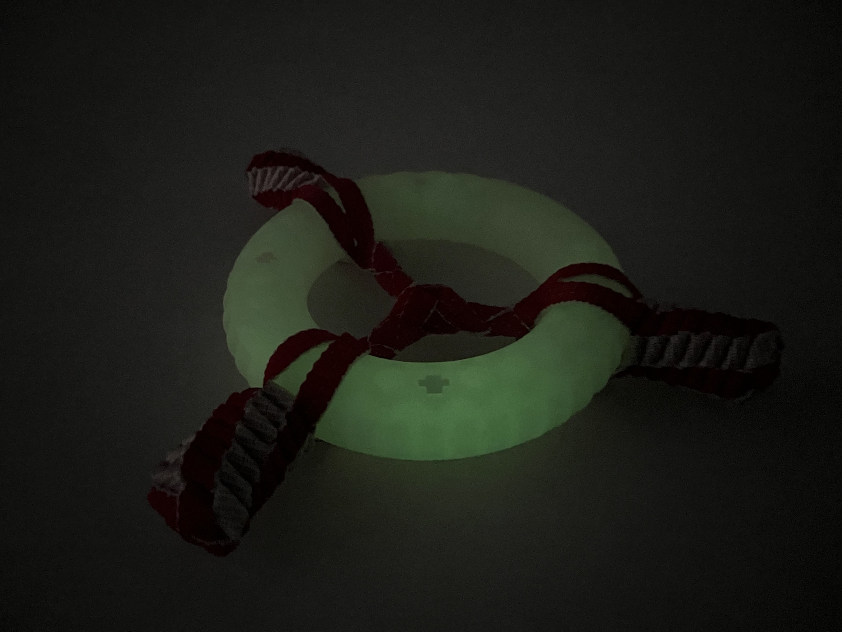 Diseñado especialmente para resistir horas de juego y masticación, este juguete luminoso hará que tus salidas nocturnas sean más entretenidas y seguras. Con su brillante resplandor en la oscuridad, tu perro nunca perderá de vista su juguete favorito.