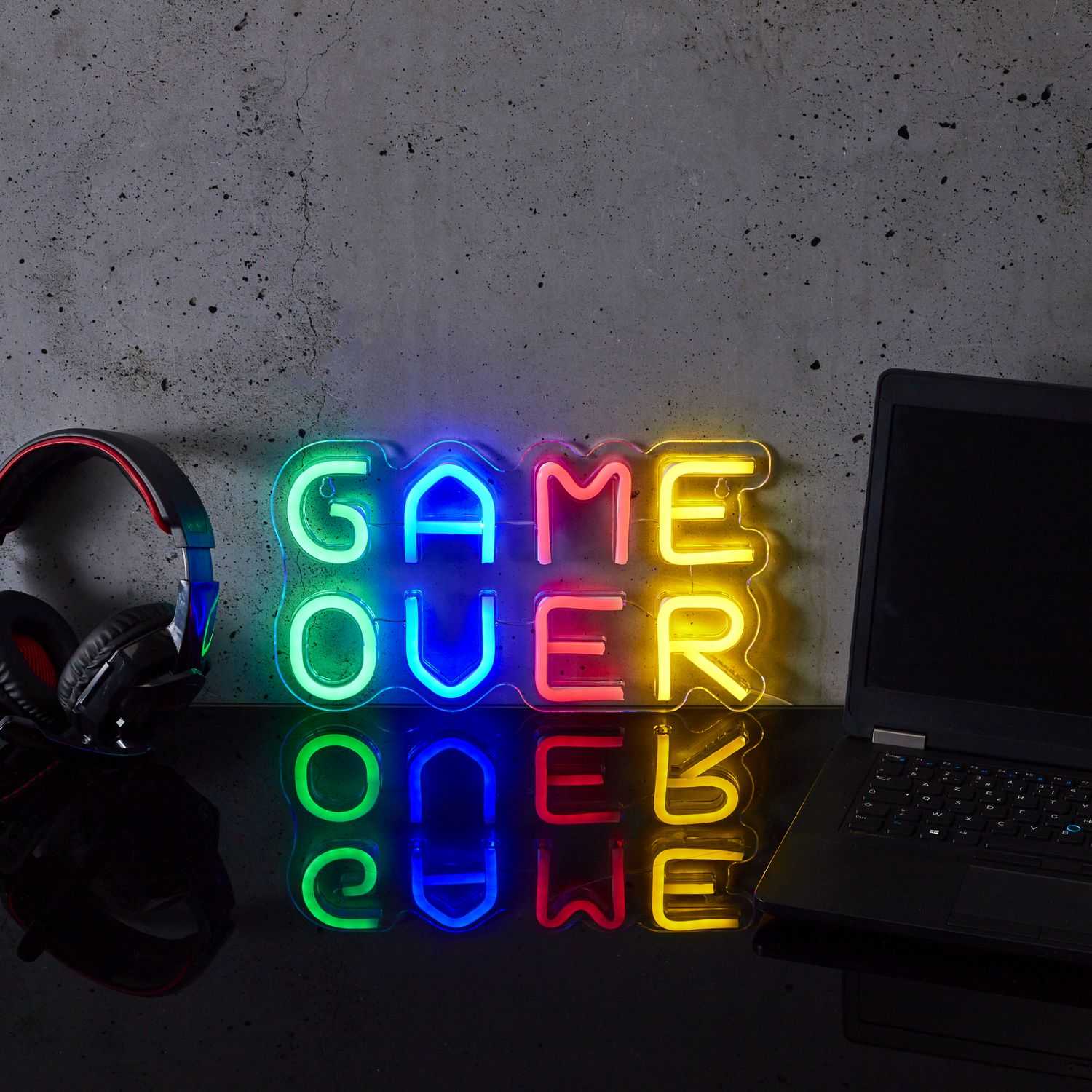 Dale un toque de estilo único a tu espacio con nuestra exclusiva Lámpara LED Efecto Neón Game Over Usb. Con su diseño innovador y su luz multicolor de 55 lúmenes, esta lámpara es ideal para crear un ambiente relajado y personalizado en cualquier rincón de tu casa.