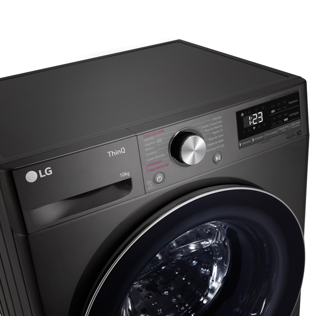 El Lavarropas ThinQ de LG redefine la experiencia de lavado con su capacidad de 10 kg de lavado perfecta para manejar cargas grandes con facilidad. Su diseño de carga frontal y acabado negro moderno no solo embellece tu hogar, sino que optimiza cada lavado con tecnología de última generación.