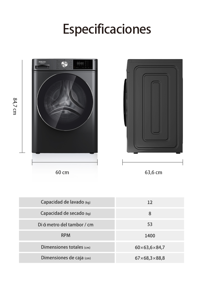 Lavasecarropas Philco Carga Frontal 12/8 Kg Titanium Grey Inox