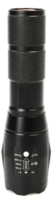Equipada con una lente de óptica convexa, esta linterna ofrece 200 lúmenes de brillo y 5 modos de uso para adaptarse a cualquier situación, desde actividades al aire libre hasta emergencias. Su diseño permite la utilización de 1 batería 18650 o pilas N°7 (AAA), brindando flexibilidad en su alimentación.
