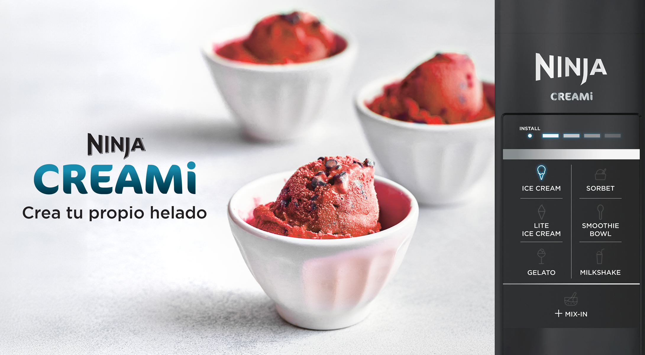 7 PROGRAMAS: Ice Cream (Helado) , Sorbet (Sorbete), Milkshake (Batido), Smoothie bowl, Light Ice Cream (Helado light), Extras: después de batir, distribuye uniformemente trozos de chocolate, frutos secos, frutas, etc m por todo el postre.