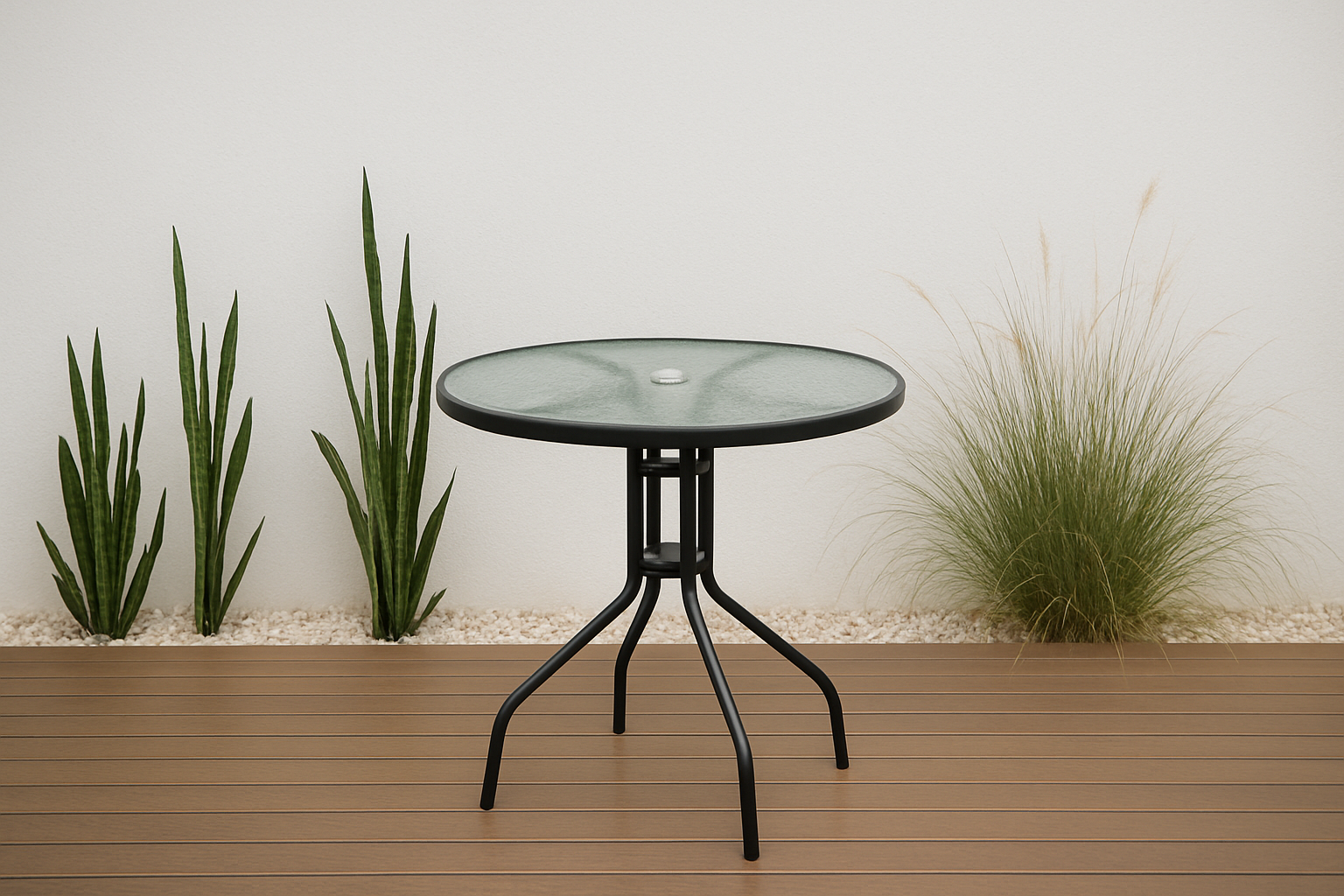 | Material de la base | Vidrio con textura de agua, con orificio para sombrilla |