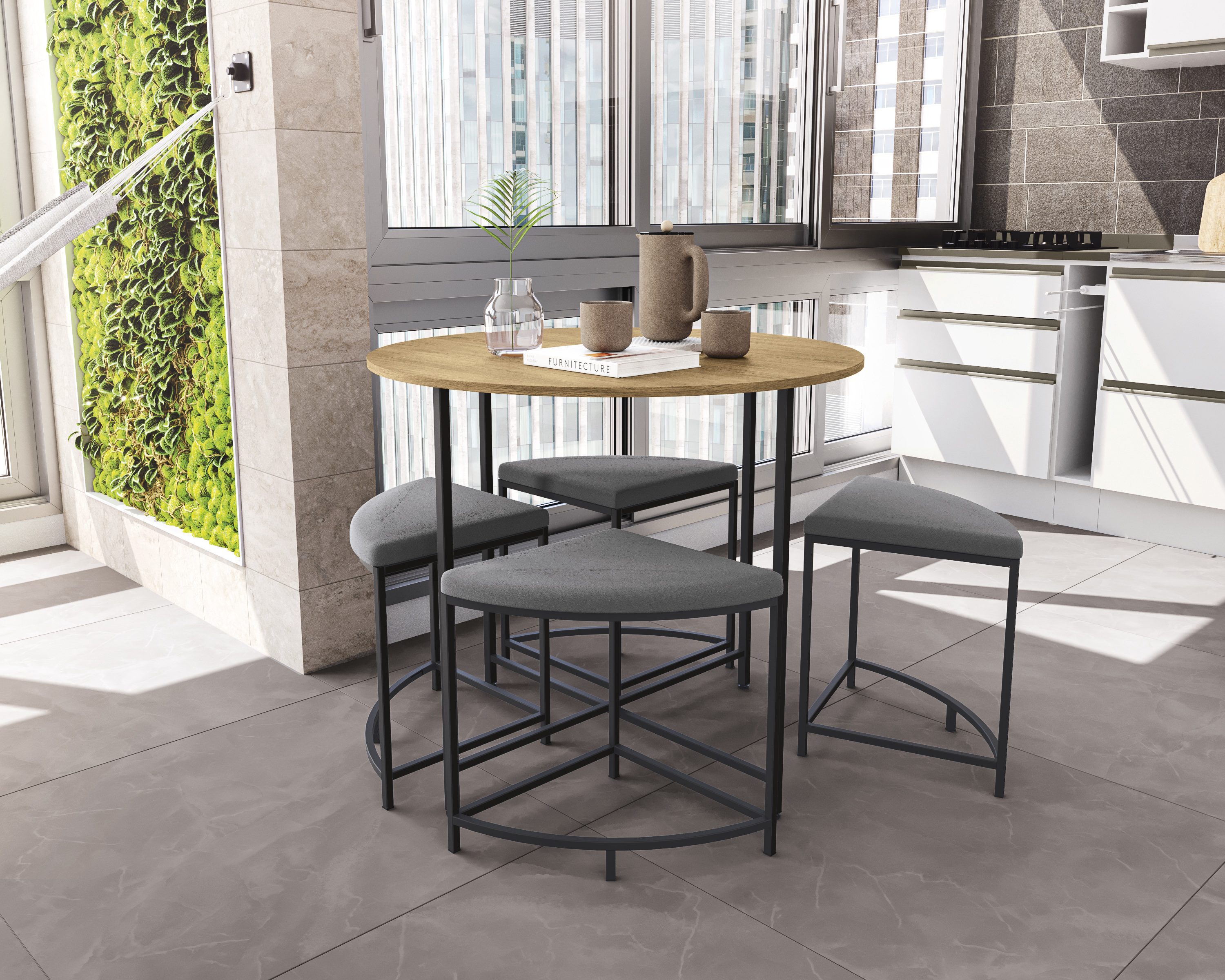 Los 4 bancos incluidos complementan perfectamente el diseño industrial, brindando comodidad y estética para que disfrutes de momentos únicos, ya sea en reuniones familiares, cenas especiales o encuentros con amigos. Su diseño compacto y funcional se adapta a varios ambientes, siendo una opción ideal tanto para interiores como exteriores protegidos.