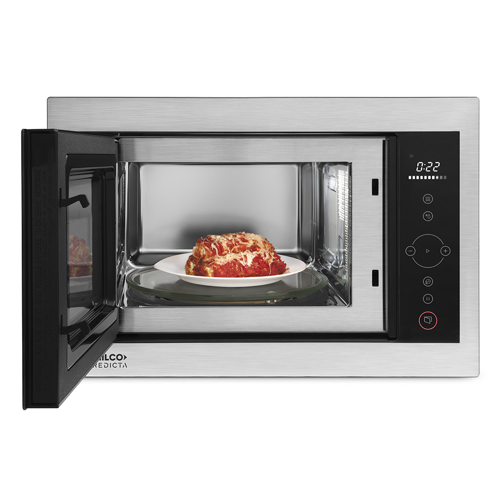 Con el Microondas con Grill Panel Táctil empotrable Predicta Philco descubrí la comodidad de cocinar con tecnología de vanguardia. Explorá todos sus programas, como descongelar y grill y facilitá tus tareas en la cocina. Tiene una capacidad de 25 Lts y además ofrece una potencia máxima de 900 watts. Su potente función de grill de 1000 W te permite dorar y gratinar tus comidas con facilidad.