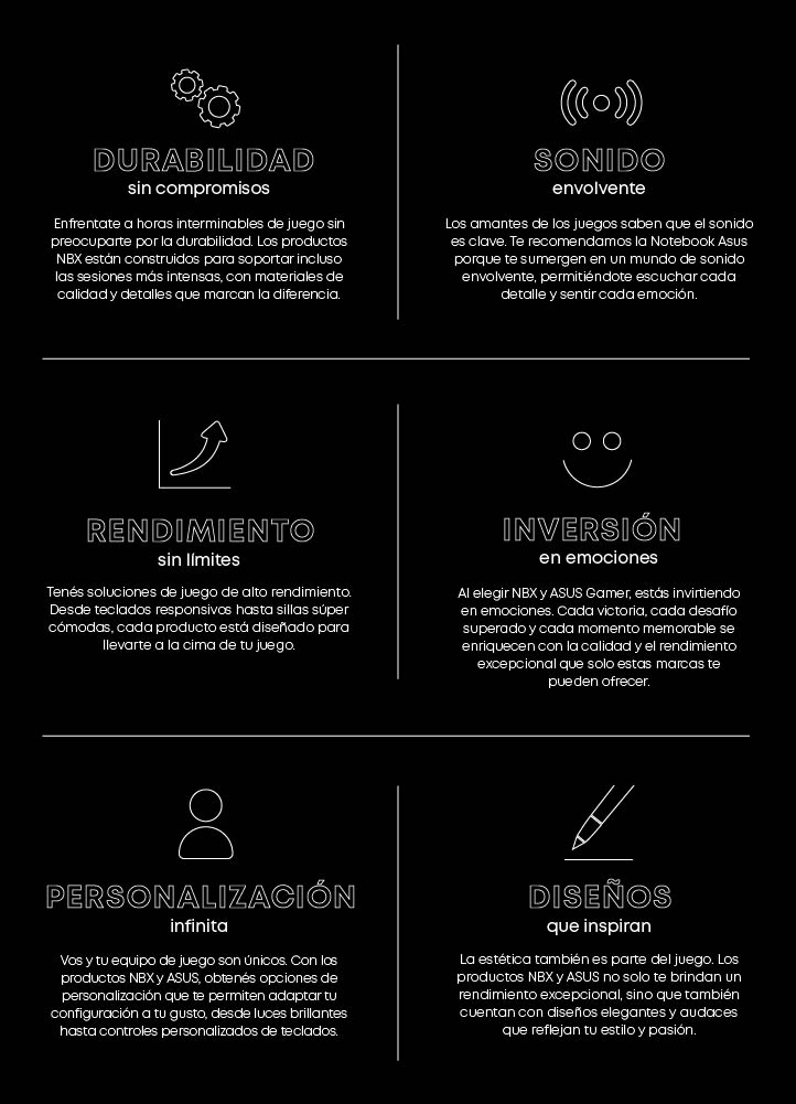 ¡Más que un Producto, una Pasión! En el emocionante mundo Gamer, la elección de tus herramientas de juego es fundamental. Es por eso que en Tienda Newsan te recomendamos los productos Gamer NBX y ASUS, y aquí te decimos por qué: