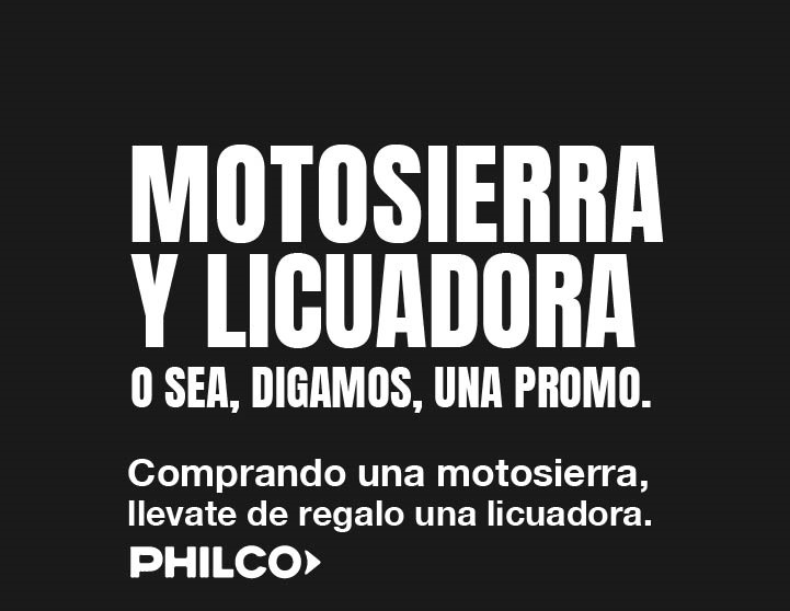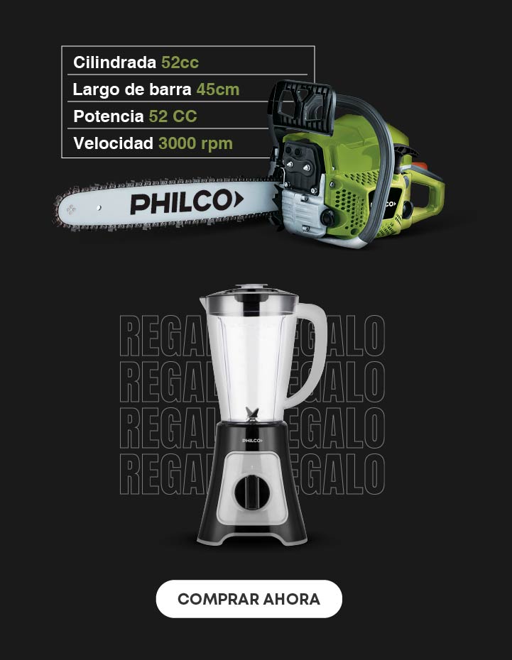 Promoción válida en la República Argentina para compras de Motosierra Philco 94MJPMO217DHFP realizadas en www.tiendanewsan.com.ar desde el 19/4/2024 al 22/4/2024 o hasta agotar stock de 20 unidades, lo que ocurra primero. Pilisar S.A. CUIT 33-70918084-9.