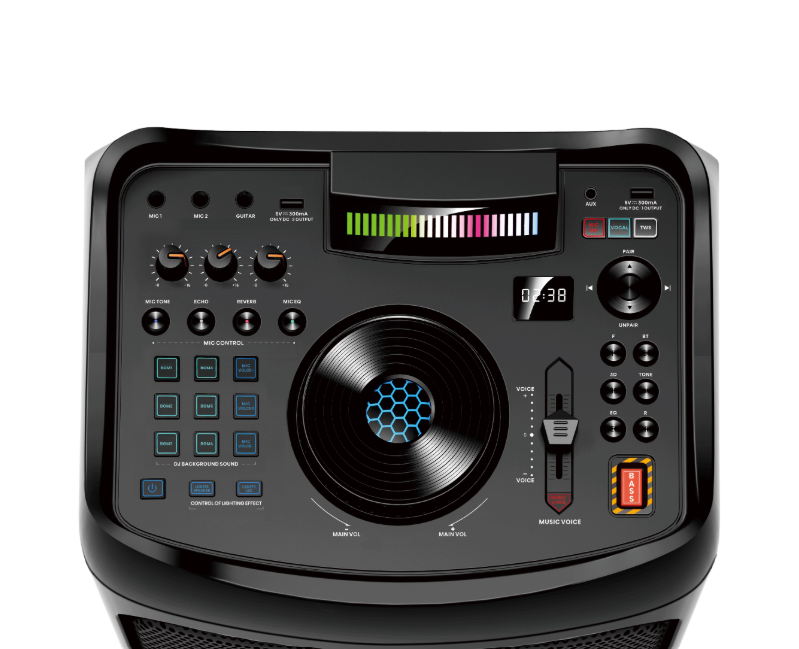 - Efecto luces: 8 efectos de iluminación en la parte frontal y 12 efectos de iluminación en la parte superior