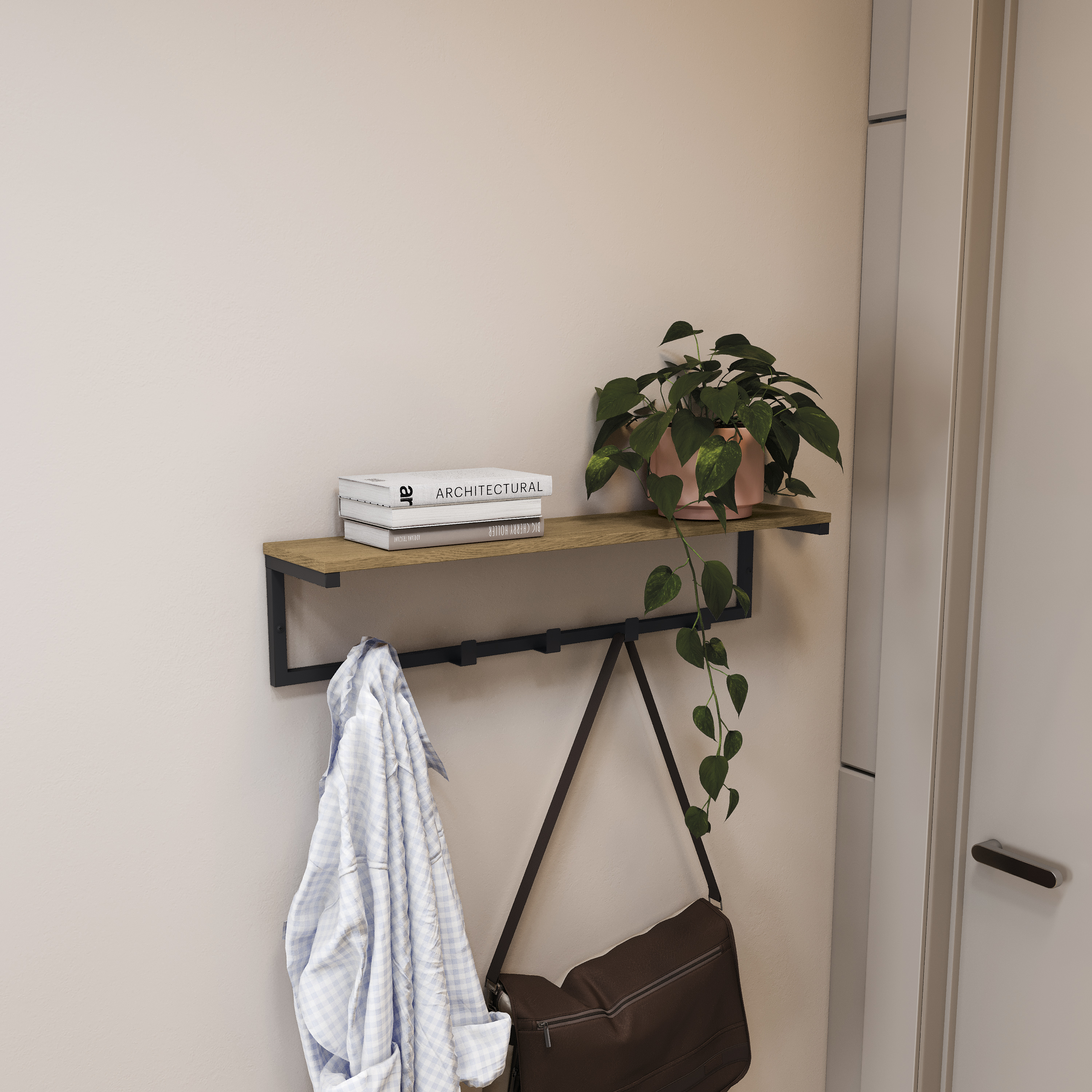 Este perchero no solo es funcional, sino también un elemento de diseño que cautivará a quienes pasen por tu puerta. Fabricado con materiales de alta calidad como madera MDP y hierro, soporta hasta 12 kg, perfecto para tus prendas favoritas. ¡Con 5 ganchos robustos, nunca te faltará espacio!