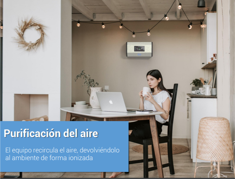 El equipo recircula el aire, devolviendolo al ambiente de forma ionizada.