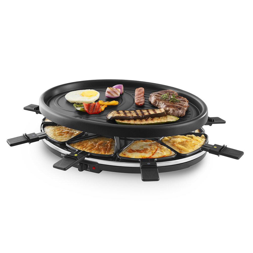 La Racletera eléctrica para 8 Personas Atma, con su potencia impresionante, asegura que todos puedan disfrutar de una comida caliente y deliciosa al instante. El revestimiento antiadherente en la parrilla significa menos tiempo de limpieza y más tiempo disfrutando de la compañía.
