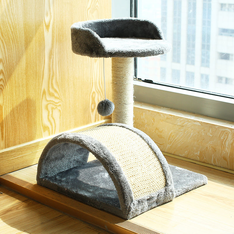 Desde su plataforma elevada, tu gatito podrá vigilar su reino; mientras que el resistente puente de rascado de soga de sisal cuida sus uñas y mantiene su instinto afilado.