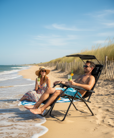Este modelo cuenta con un techo ajustable, ideal para protegerte del sol mientras descansás en el jardín, la terraza o la playa.