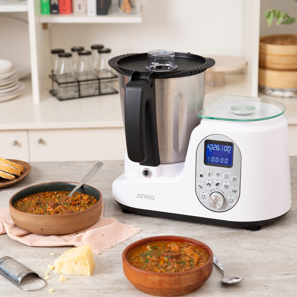 El Robot de Cocina Atma Blanco cuenta con tecnología innovadora y multifuncional que te ayuda a preparar una amplia variedad de recetas de manera rápida y sencilla. Con su diseño moderno y elegante, se adapta perfectamente a tu cocina, ya que combina todos los electrodomésticos que necesitás en uno solo.