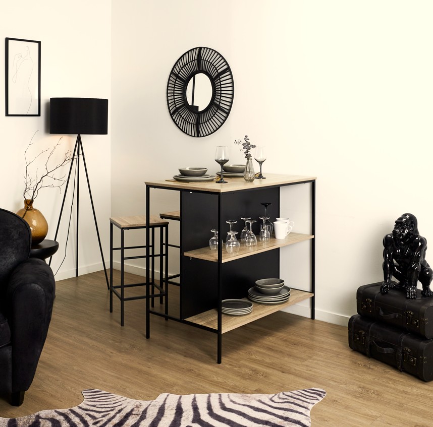 Sus bancos tipo industrial añaden un toque moderno y sofisticado, convirtiéndose en el epicentro de charlas y risas interminables. Lo mejor de todo, su diseño está pensado para optimizar tu espacio, haciendo que se integre de manera armoniosa en cualquier ambiente. Además, ensamblarlo es un paseo gracias al manual incluido.