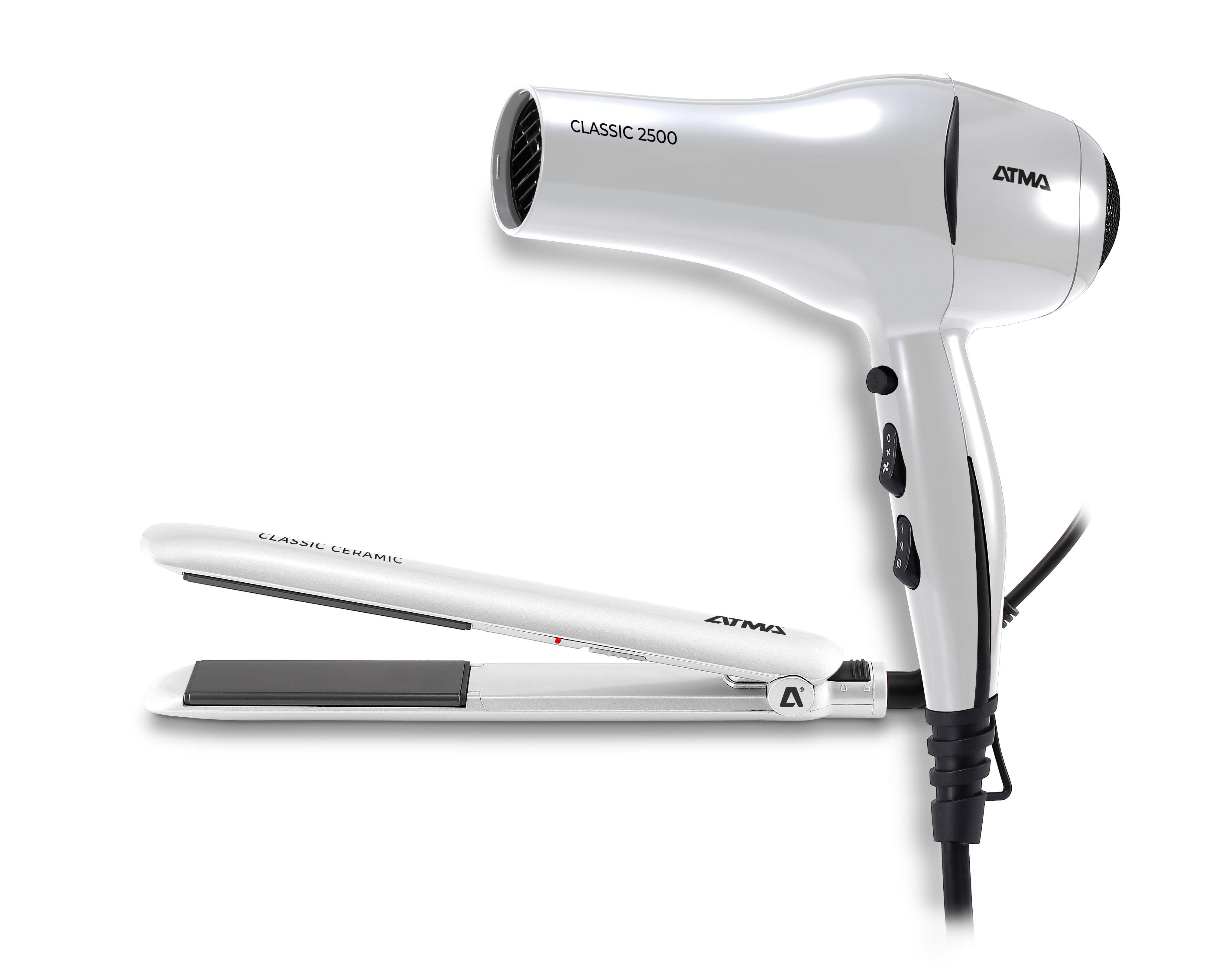 ¡Descubrí el Set Kit Secador de Pelo + Planchita de Pelo Blanco Atma, la combinación perfecta para lograr un aspecto radiante en minutos!