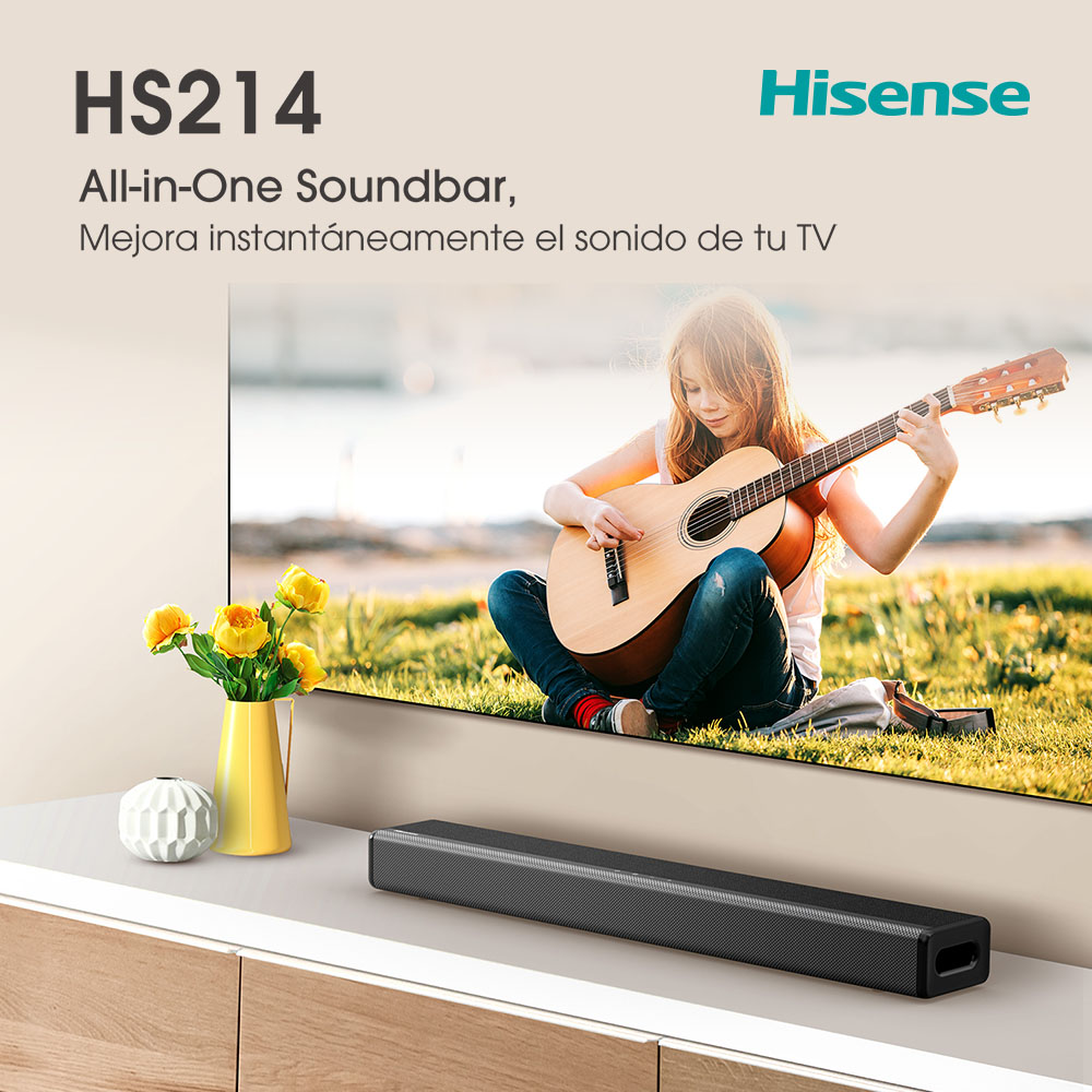 Con la Barra de Sonido 108 W Soundbar Hs214 Hisense disfrutá una experiencia de sonido superior. Fácil de colocar e instalar a tu TV, no solo podés escuchar las escenas, sino que te va a transportar dentro de ellas