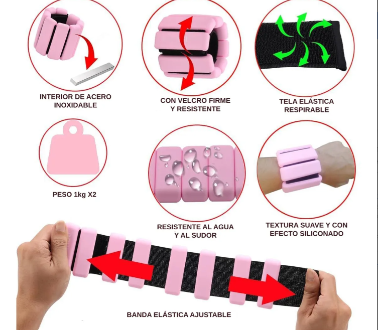 Tobilleras Muñequeras Proline Par 1kg Rosa